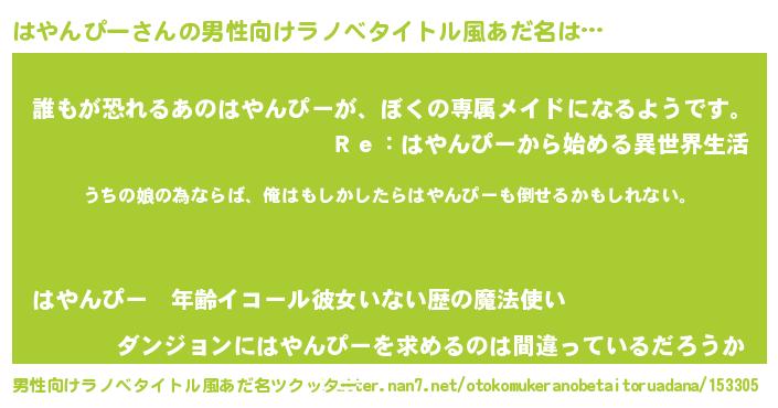 | 女子向けラノベタイトル風あだ名 | 『はやんぴーの婚約者』 |