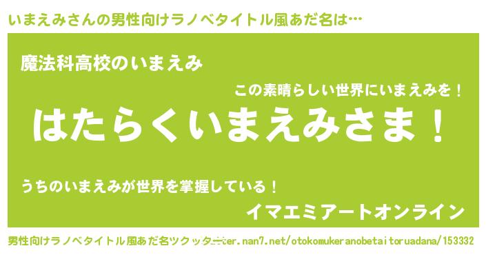 | ヘコむあだ名 | 『いまもー』『いまえみ(遠い目)』 |
