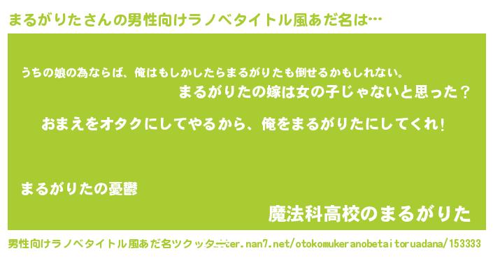 | 胡散臭い通販商品みたいなあだ名 | 『お金では代えられないマグネット磁石…その名も「まるがりた」』 |