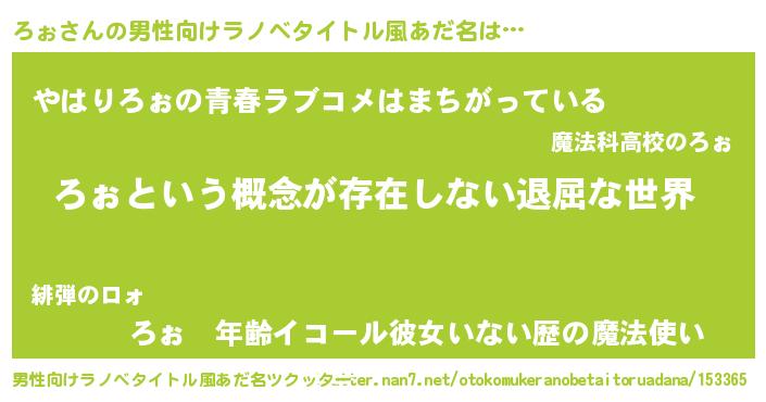 | 胡散臭い通販商品みたいなあだ名 | 『来世でも幸せになれる健康食品…その名も「ろぉ」』 |