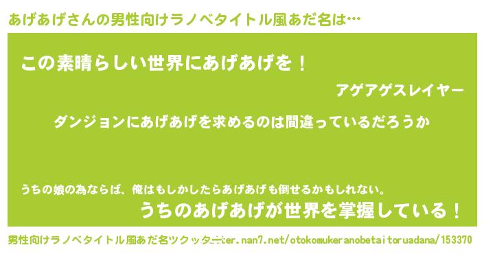 | 女子向けラノベタイトル風あだ名 | 『あげあげは平凡を望む』 |