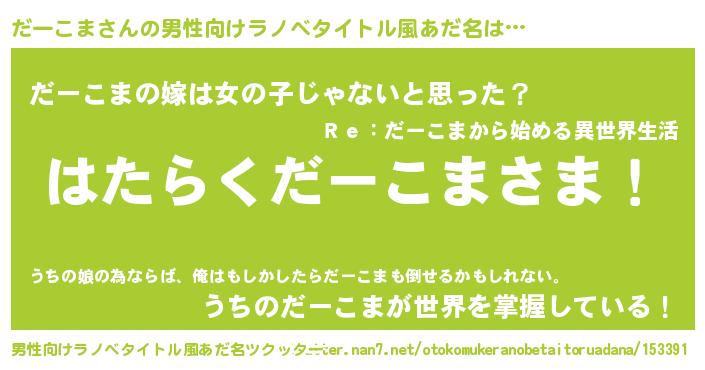 | ヒーロー風カッコイイあだ名 | 『暗黒騎士ダー』『サイバー戦士ダーコマ』 |