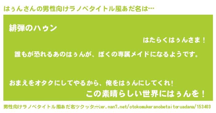 | ヒーロー風カッコイイあだ名 | 『ネオハゥン』『仮面ハゥダー』 |