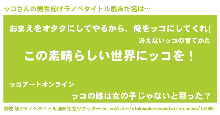 | 意味不明あだ名 | 『住所不定無職ッコ(4歳)』『ペロリンッコ』 |