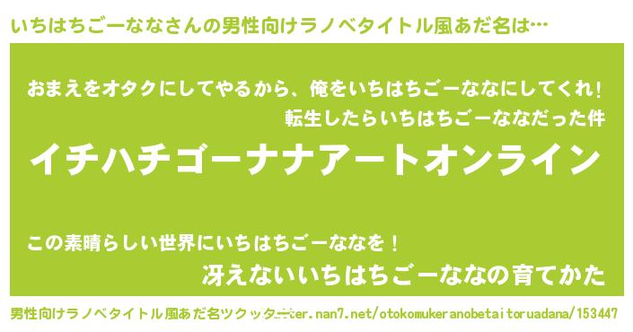| 女子向けラノベタイトル風あだ名 | 『誰かこのいちはちごーななを説明してください! ~契約から始まるウェディング~』 |