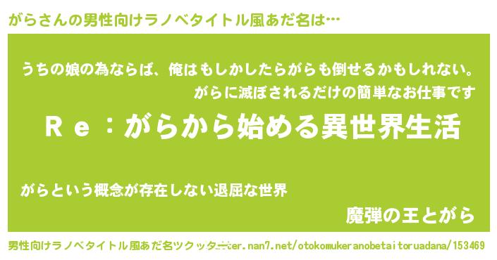 | 女子向けラノベタイトル風あだ名 | 『闇のがら』『がらの婚約者』 |