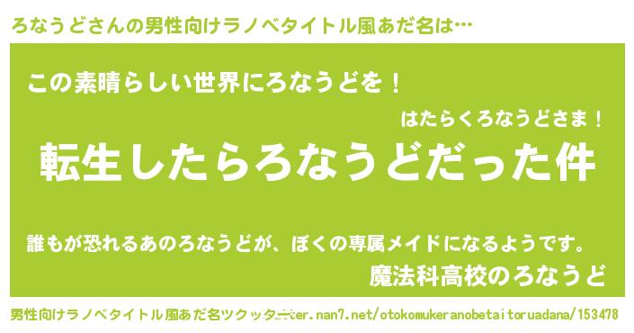 | 料理風あだ名 | 『ろなうどごはん』 |