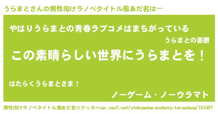 | ヒーロー風カッコイイあだ名 | 『仮面ウラダー』『ウルトラうらまとマン』 |