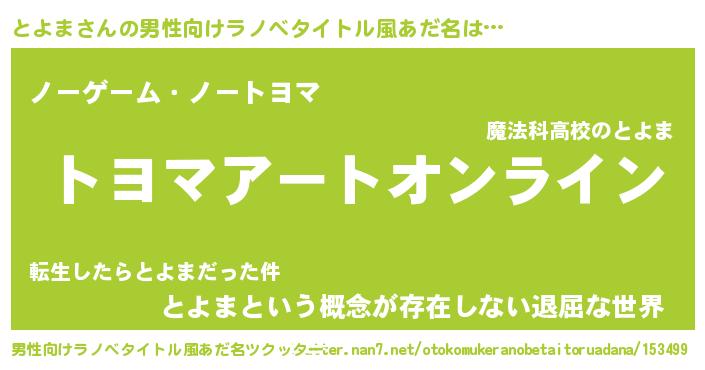 | ヒーロー風カッコイイあだ名 | 『スーパートヨマ』『慈愛の使者とよま』 |