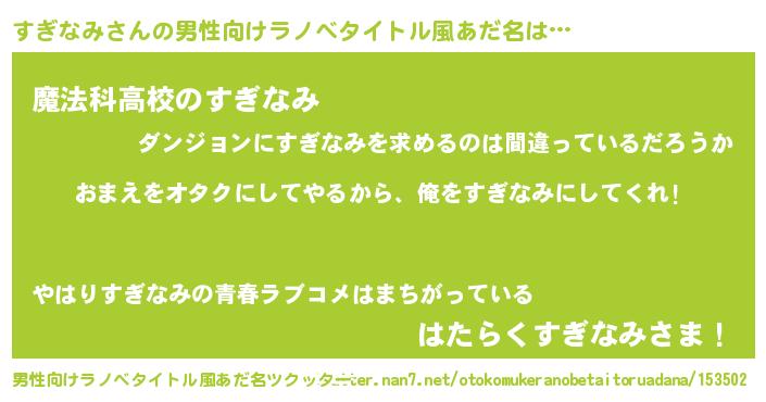 | ヒーロー風カッコイイあだ名 | 『愛の使者すぎなみ』『最強戦士スギナミ』 |