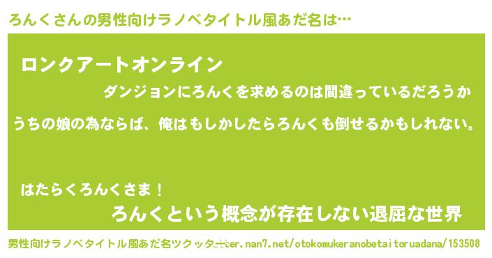 | 胡散臭い通販商品みたいなあだ名 | 『世界が平和になる高級そうな壺…その名も「ろんく」』 |