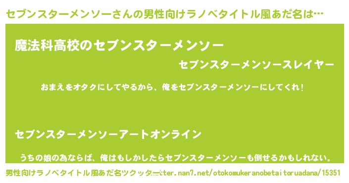 | 女子向けラノベタイトル風あだ名 | 『セブンスターメンソー恋絵巻』 |