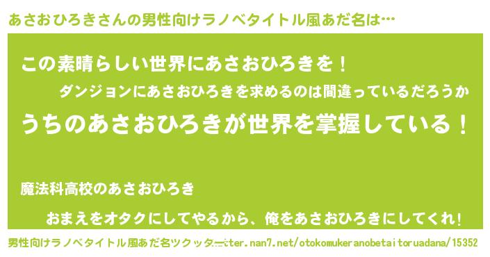| 意味不明あだ名 | 『住所不定無職あさおひろき(53歳)』 |