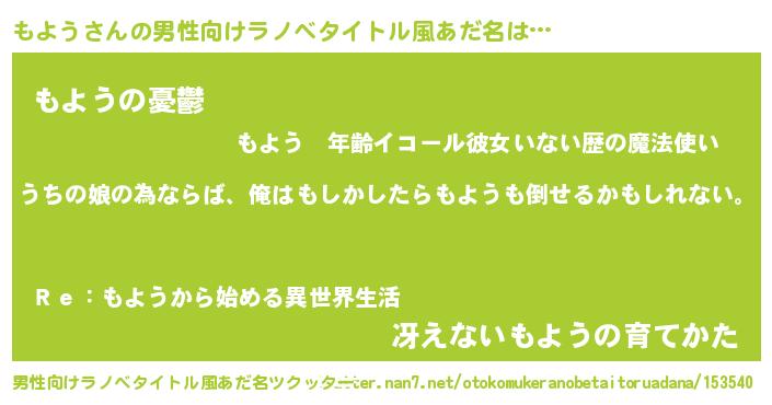 | ファンタジー風あだ名 | 『エターナルモヨウー』『モヨフェル』 |