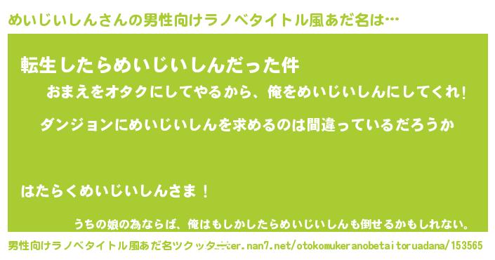 | 女子向けラノベタイトル風あだ名 | 『めいじいしんは平凡を望む』 |
