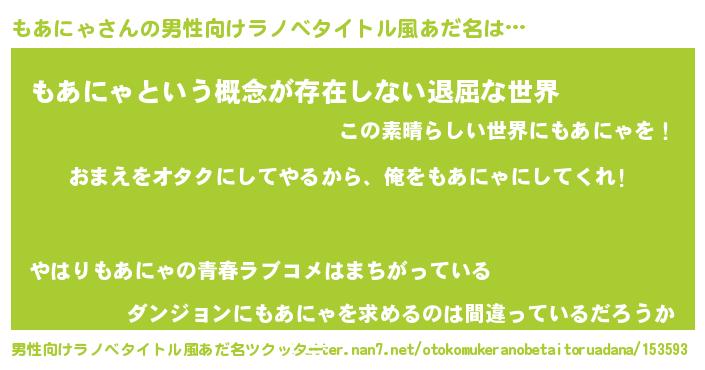 もあにゃさんの男性向けラノベタイトル風あだ名をツクッター!