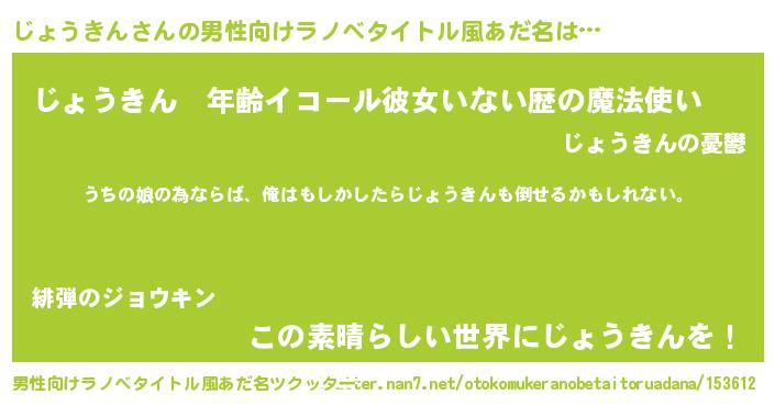 | 女子向けラノベタイトル風あだ名 | 『じょうきんの婚約者』 |