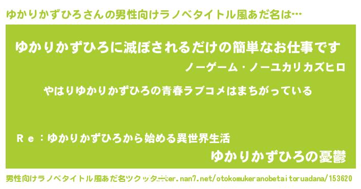 | 女子向けラノベタイトル風あだ名 | 『ゆかりかずひろの雑貨屋さん』 |
