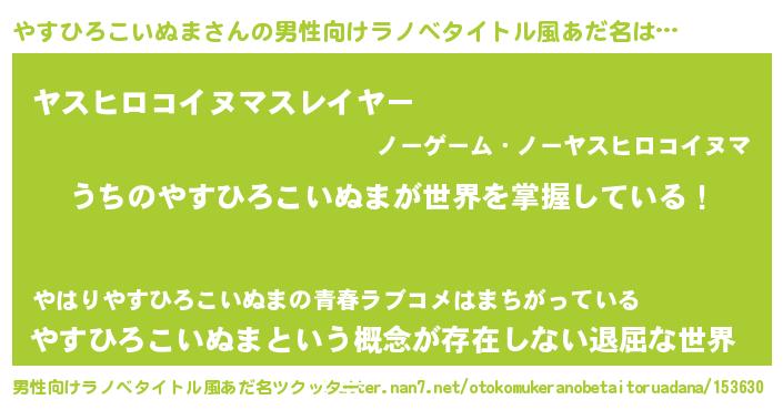 | ヒーロー風カッコイイあだ名 | 『ネオヤスヒロコイヌマ』 |