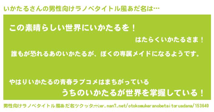 | 胡散臭い通販商品みたいなあだ名 | 『前代未聞の健康食品…その名も「いかたる」』 |