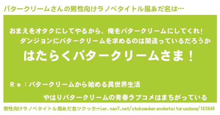 | 女子向けラノベタイトル風あだ名 | 『首の姫と首なしバタークリーム』 |
