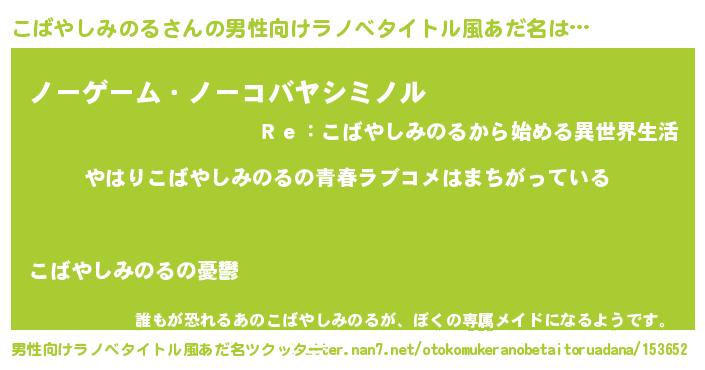 | 女子向けラノベタイトル風あだ名 | 『こばやしみのるの雑貨屋さん』 |