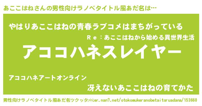 | 料理風あだ名 | 『あここはねごはん』 |