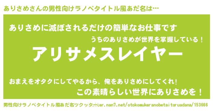 | ヒーロー風カッコイイあだ名 | 『仮面アリダー』『天空の使者ありさめ』 |