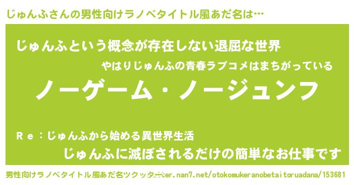 | 女子向けラノベタイトル風あだ名 | 『じゅんふ恋絵巻』『じゅんふの契約王妃』 |