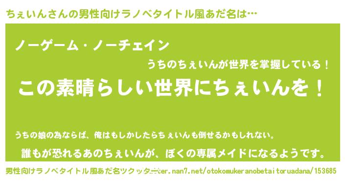 | 意味不明あだ名 | 『住所不定無職ちぇいん(53歳)』 |