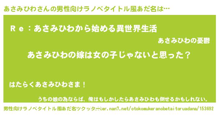 | 女子向けラノベタイトル風あだ名 | 『あさみひわの卵を拾いまして』 |