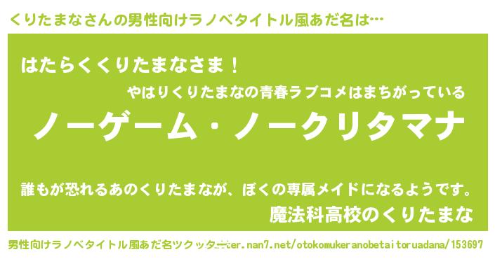 | 女子向けラノベタイトル風あだ名 | 『死神くりたまなの再婚』 |