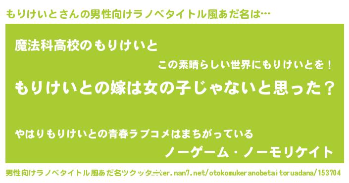 もりけいとさんの男性向けラノベタイトル風あだ名をツクッター!