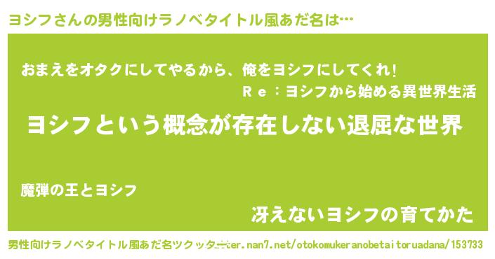 | ヒーロー風カッコイイあだ名 | 『ネオヨシフ』『正義の使者ヨシフ』 |