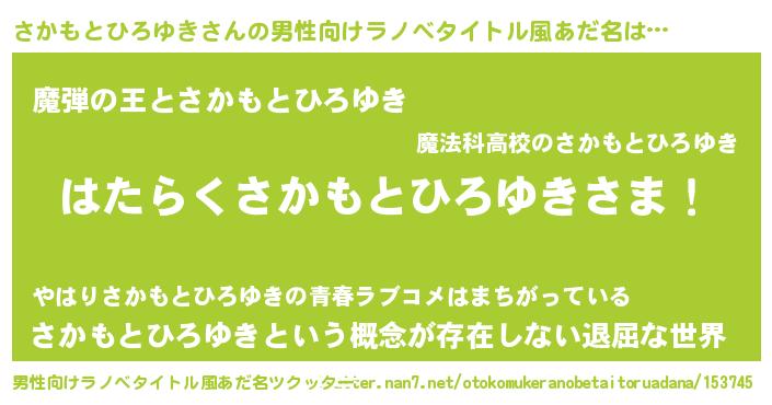 | ヒーロー風カッコイイあだ名 | 『仮面サカダー』『ネオサカモトヒロユキ』 |
