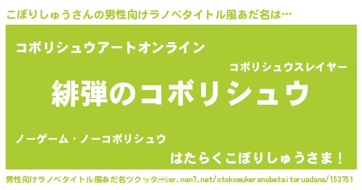 | 胡散臭い通販商品みたいなあだ名 | 『必ず成功するブレスレット…その名も「こぼりしゅう」』 |