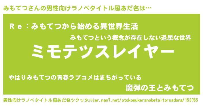 みもてつさんの男性向けラノベタイトル風あだ名をツクッター!