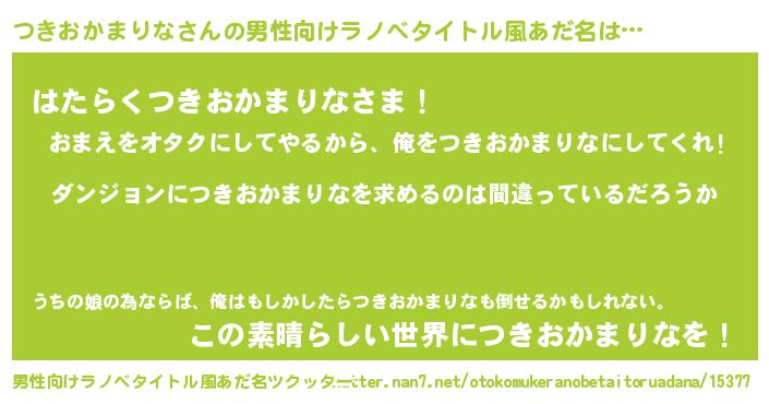 | 女子向けラノベタイトル風あだ名 | 『つきおかまりなは平凡を望む』 |