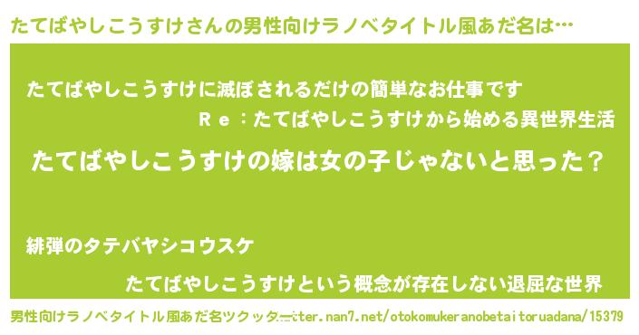 | 胡散臭い通販商品みたいなあだ名 | 『伝統あるサプリメント…その名も「たてばやしこうすけ」』 |