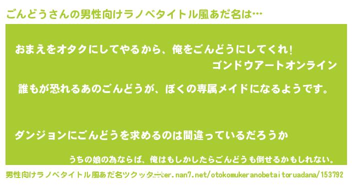 | 女子向けラノベタイトル風あだ名 | 『異世界でカフェごんどうを開店しました。』 |