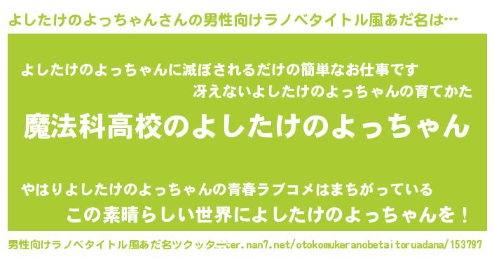 | 意味不明あだ名 | 『自称よしたけのよっちゃん』 |