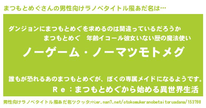 | 女子向けラノベタイトル風あだ名 | 『まつもとめぐ恋絵巻』 |