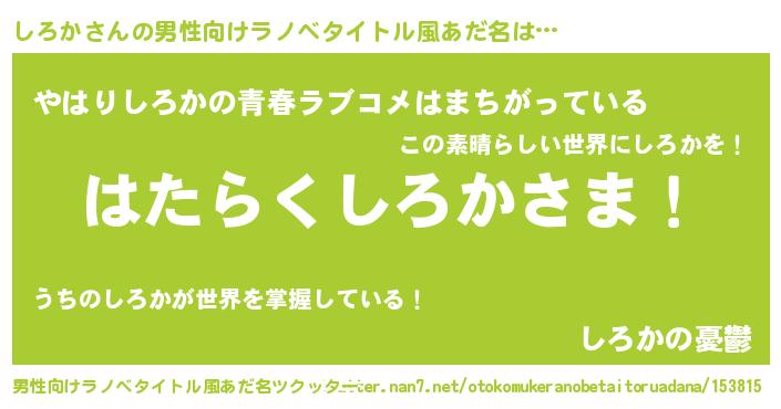 | ヘコむあだ名 | 『つくし』『しろにゅー』『しろ太郎』 |