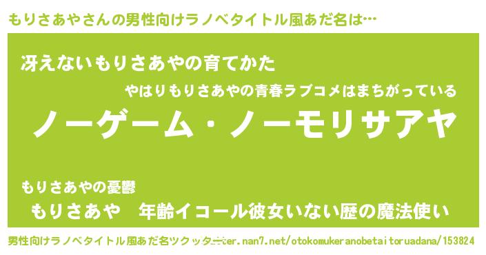 | ヒーロー風カッコイイあだ名 | 『天空の使者もりさあや』『魔戒騎士モリ』 |