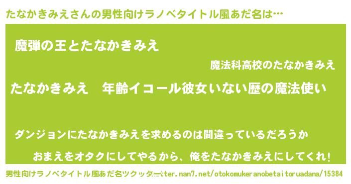 | 女子向けラノベタイトル風あだ名 | 『たなかきみえの玉の輿計画!』 |