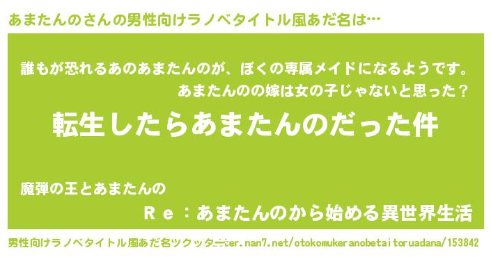 | 女子向けラノベタイトル風あだ名 | 『婚約破棄系悪役あまたんのに転生したので、保身に走りました。』 |