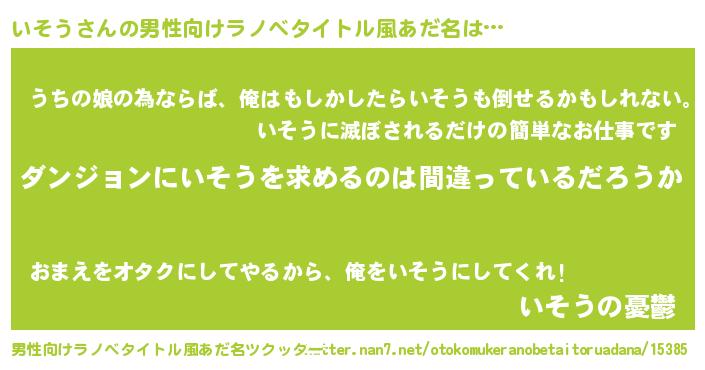 | ヒーロー風カッコイイあだ名 | 『暗黒騎士イソ』『ウルトラいそうマン』 |