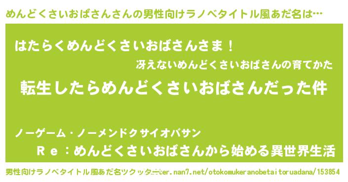 | 恥ずかしいあだ名 | 『メンドクサイオバサンデラックス』 |