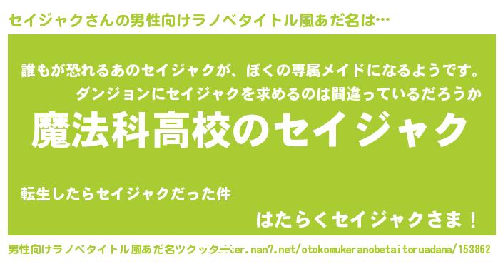 | 意味不明あだ名 | 『自称セイジャク』『永久保存セイジャク』 |