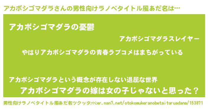 | 意味不明あだ名 | 『アカボシゴマダラフォーエバー』 |